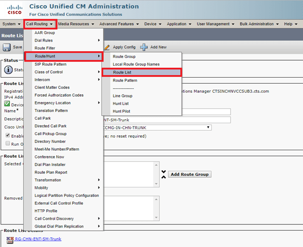 Step 1: Login to CUCM admin> Call Routing > Route\Hunt> Route List