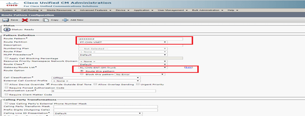 Step 1 : Click on Call Routing> Route/Hunt> Route Pattern